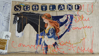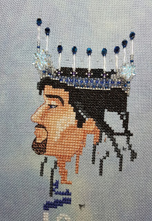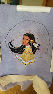 Currently I am working on "Winter Wings ' by Nene Thomas - an old retired chart so it's an "old school " wip with a paper chart and self gridded fabric